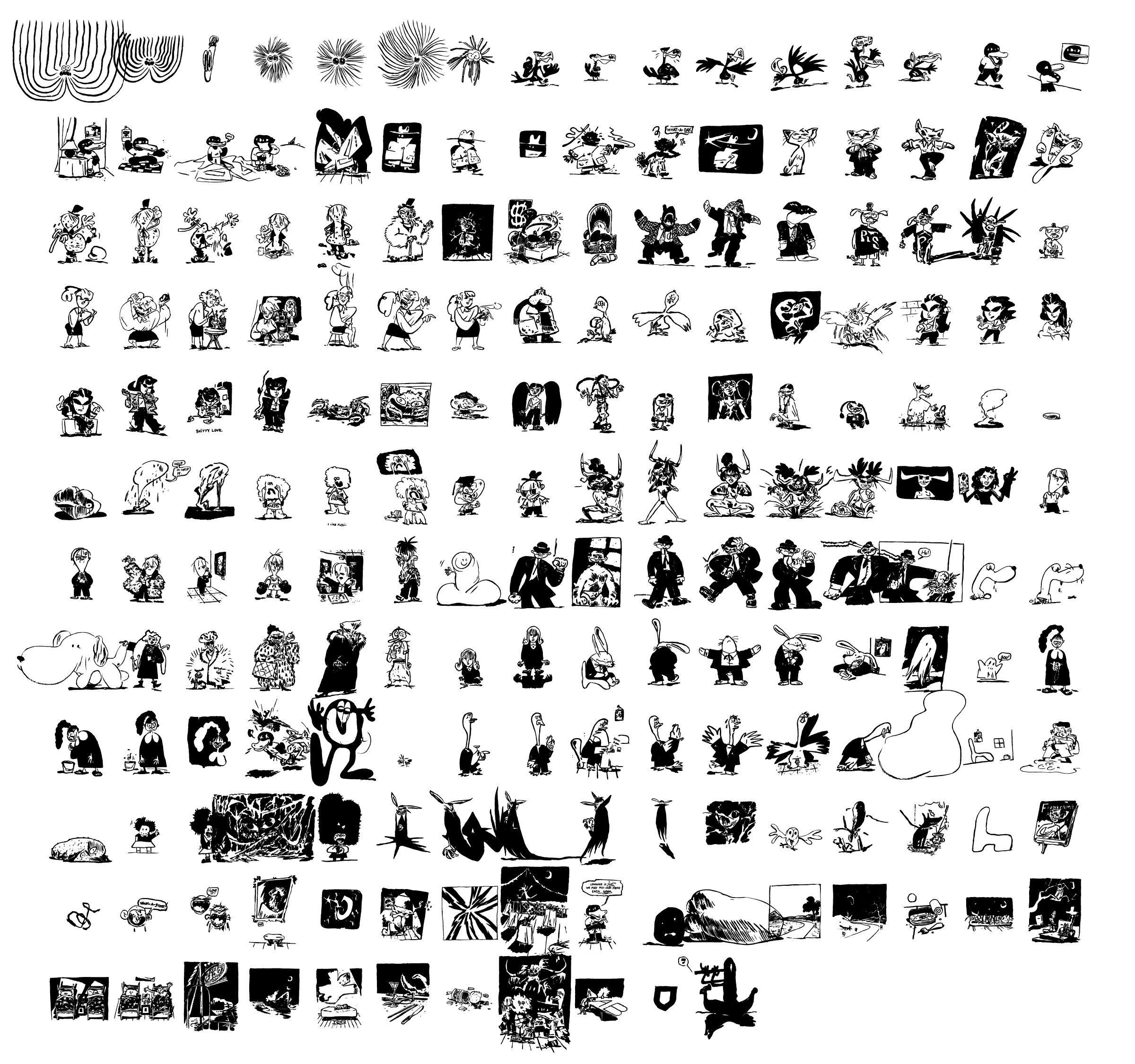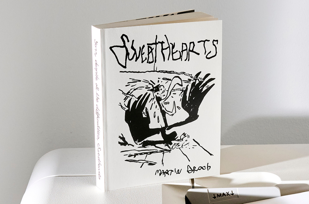 Two liminal characters, duck and cat, when joined at the hip, become a ligature of close friends walking sweetly side by side. Mr Egg when set close to crab will consume him, steamed, buttered and plated. A Dobermann tied to an it girl can only ever result in a terrible glyph situation. Soon, we’ll start collecting clues as to the whys, the whats, and the wheres. We will not end the nightmare, nor explain it – because this is Sweathearts.
